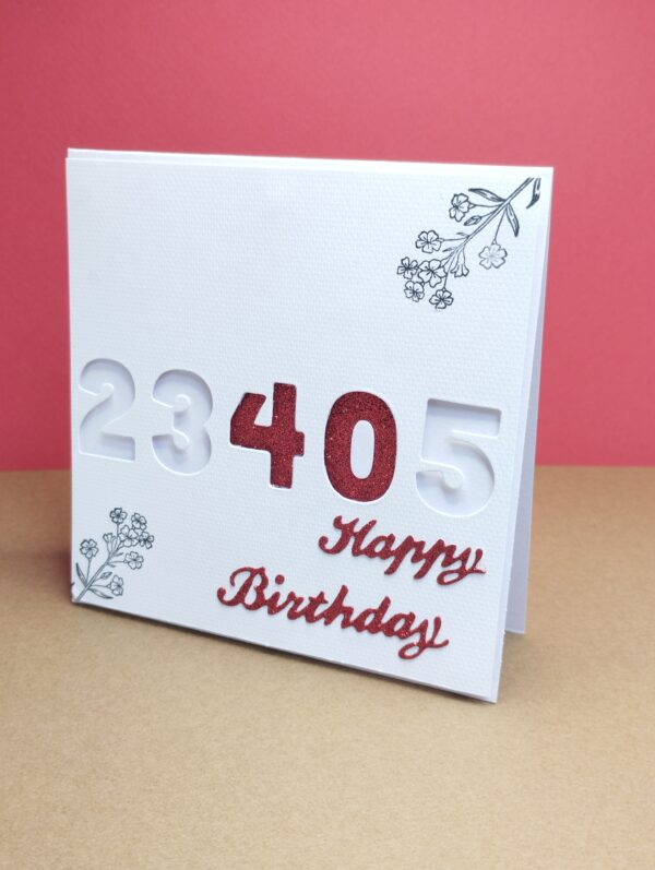 Carte réalisée avec des tampons et du papier paillette rouge.