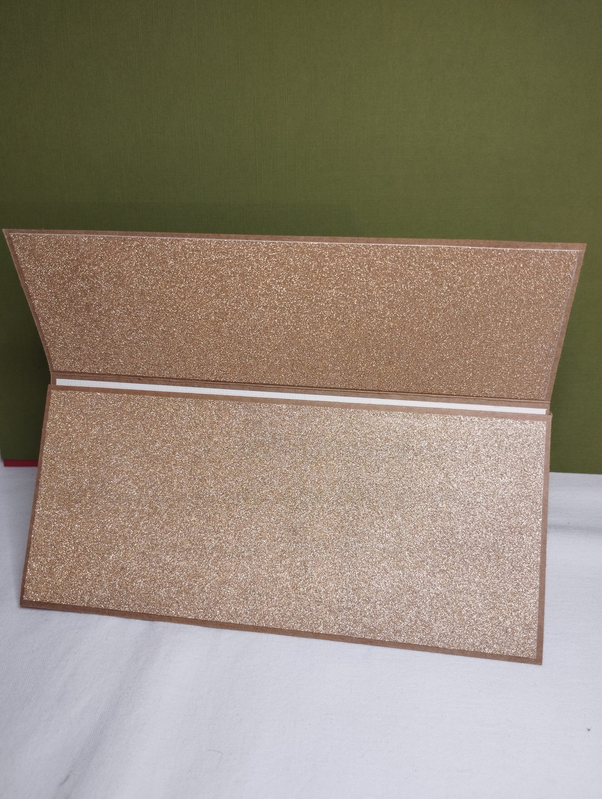 Elle est réalisée avec du papier kraft 200gr, du papier blanc cassé et du papier pailleté doré.
